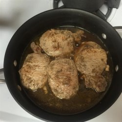 2Meanwhile, in a separate small saucepan over high heat, combine the water and the bouillon and stir until bouillon dissolves. Add this to the chops, reduce heat to low, cover and simmer chops for 45 minutes.