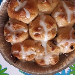 9Place confectioners' sugar and 1 1/2 teaspoons milk in a plastic sandwich bag; knead the bag until combined. Snip off one corner of the bag; pipe a cross into the scored lines on each bun.