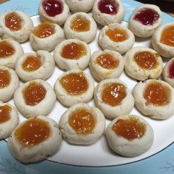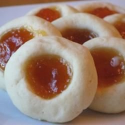2Preheat oven to 350 degrees F (175 degrees C). Roll tablespoonfuls of dough into balls, and place them 2 inches apart on ungreased cookie sheets. Using your finger, make an indention in the center of each ball, and fill with 1/2 teaspoon of apricot preserves.